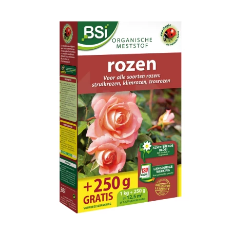 is een organische meststof voor rozen. BSI bio meststof voor rozen is rijk aan kali en magnesium voor een uitbundige bloei. De rozen meststof is te gebruiken voor alle soorten rozen: struikrozen, klimrozen of trosrozen.