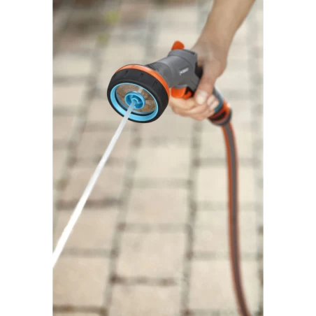 - De straal in eenvoudig regelbaar van sproeinevel tot harde straal.