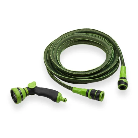 met handige 10 standen sproeier en kraanstuk voor het monteren op de kraan. De flexibele tuinslang zet uit op het moment dat er water in de slang komt. Door de waterdruk zet de tuinslang uit van 15 meter tot 30 meter.