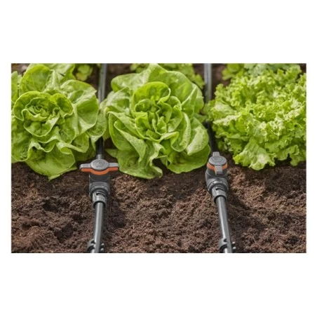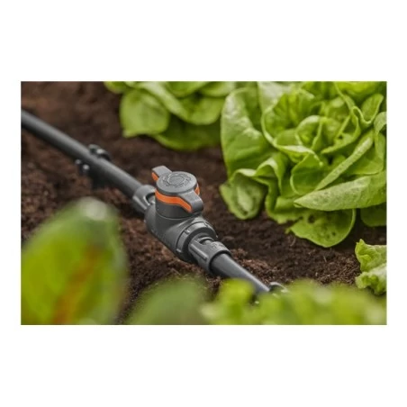 voor een gemakkelijke uitschakeling en goede regulering van de waterstroom. Het afsluit- en reguleerventiel 13 mm (1/2″) van GARDENA geeft je de mogelijkheid om afzonderlijke vertakkingen van de 13 mm Koppelingsbuizen en Druppelbuizen van het Micro-Drip-System af te sluiten of te regelen. Het ventiel is erg handig als je planten wil bewateren met uiteenlopende waterbehoeften, of wil stoppen een rij planten te bewateren na het oogsten. De handige regulerende functie laat je de waterstroom beheersen en specifiek aanpassen aan je planten voor optimale en waterzuinige bewatering.