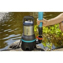Of u nu uw tuinvijver wilt leegpompen en schoonmaken, een met regenwater gevulde bouwput wilt legen of uw kelder wilt schoonmaken na een overstroming of een leidingbreuk, met deze innovatieve combinatiepomp voelt u de kracht van GARDENA pompen en pompt u schoon en vuil water simpel weg. De motor heeft een vermogen van 860 W en een indrukwekkende pompcapaciteit van 19.500 liter water per uur. Met een druk van 1,0 bar en een maximale opvoerhoogte van 10 m is deze hybride pomp bijzonder efficiënt. De vlakke aanzuigkracht in de modus voor schoon water kan schoon of licht vervuild water tot 1 mm diep verwijderen, waarna een keldervloer gemakkelijk kan worden schoongeveegd. In geval van troebel water dat vuildeeltjes met een deeltjesgrootte tot 35 mm bevat, verandert u de 2-in-1 dompelpomp eenvoudig in een vuilwaterdompelpomp door de andere gebruiksmodus te kiezen. Dit is ideaal voor het droogmaken van een volgelopen bouwput met grove vuildeeltjes in het water en voor veel andere klussen waarbij vuil water moet worden weggepompt. Het is verrassend eenvoudig om te schakelen tussen de modi voor schoon en vuil water. Vuile handen en natte schoenen behoren absoluut tot het verleden. Dankzij het intelligente, slanke ontwerp en de hoogwaardige fabricage blijft de pomp voor vuil/schoon water 19500 Aquasensor van GARDENA altijd lekvrij en houdt uw handen en kleding altijd schoon en droog. Het keramische assysteem met lange levensduur heeft een drievoudige afdichting voor extra duurzaamheid. Een ander innovatief hoogtepunt van de pomp is het led-Aquasensor-systeem, dat op intelligente wijze het vereiste waterniveau handhaaft. De Aquasensor zorgt ervoor dat de combinatiepomp in smalle sleuven kan werken en biedt nauwkeurig instelbare in- en uitschakelhoogten. Het waterpeil wordt gemeten zonder direct contact met de sensor en wordt weergegeven met handige leds op het apparaat. Bovendien biedt de Aquasensor een intuïtieve aanraakbediening, bescherming tegen drooglopen en verstopping en handige tijdklokfuncties. Het nieuwe systeem is nog handiger dankzij de mogelijkheid om slangen met een eenvoudige klik aan te sluiten. Slangen met een diameter van 32 mm, 38 mm en 50 mm kunnen met één klik worden aangesloten. De optionele G1 ½”-schroefdraad zorgt voor nog meer aansluitmogelijkheden. Hierdoor is deze dompelpomp voor schoon/vuil water zeer indrukwekkend, niet alleen qua uiterlijk, maar vooral qua functionaliteit. Dit maakt de pomp ideaal voor alle veeleisende huis- en tuinbezitters.