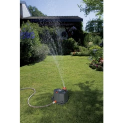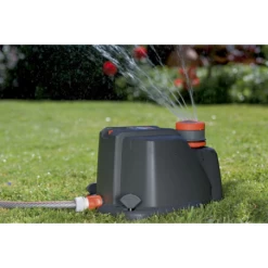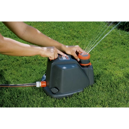 multi-instelbare sproeier AquaContour automatic is een handige sproeier voor het afzonderlijk besproeien van vrijwel elke tuincontour tot 350 m². Met het variabel programmeerbare bereik komt dit systeem zonder problemen in elke hoek van de tuin. Deze multi-instelbare sproeier is zeer eenvoudig te programmeren; er kunnen twee aparte tuincontouren, bijvoorbeeld voor en achter het huis, heel eenvoudig worden geprogrammeerd en op elk moment worden opgeroepen. Afhankelijk van het programma kunnen er maximaal 50 belangrijke contourpunten afzonderlijk worden opgeslagen. De multi-instelbare sproeier heeft vuilafstotende folietoetsen met duidelijke ondersteuning voor de gebruiker. Het programmeren van de sproeier is eenvoudig. De zachte kunststof spuitmonden op de sproeier garanderen een gelijkmatige verdeling van het water. De besproeiingssector kan met stelringen van 25° tot 360° worden ingesteld. Voor het bereik van de multi-instelbare sproeier kunnen ook verschillende waarden worden opgeslagen, tussen 2,5 en 9 m met een bedrijfsdruk van 2 bar en 10,5 m bij een bedrijfsdruk van 4 bar. De twee grondplaten zijn praktisch, omdat de sproeier hiermee precies in het geprogrammeerde besproeiingsgebied kan worden geplaatst. De multi-instelbare sproeier is ook voorzien van twee spikes. Hiermee kan de sproeier stevig in gras worden geplaatst. De GARDENA Mobiele multi-instelbare sproeier AquaContour automatic besproeit elke hoek van uw tuin.