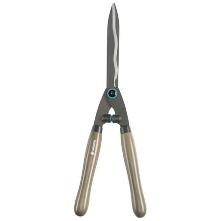De heggenschaar NatureCut heeft Houten handvaten.