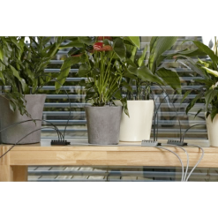 Mocht een plant veel water nodig hebben, dan is dit te koppelen aan drie druppelverdelers per pot. Er kan rekening worden gehouden met de afzonderlijke watervereisten van verschillende planten. De volledig afgesloten laagspanningstransformator kan zowel binnen als buiten worden gebruikt.