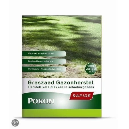 hersteld kale plekken in het gazon. Graszaad gazonherstel rapide 500 gram van Pokon is voldoende voor 20 tot 30m2 gazon. Pokon gazonherstel graszaad rapide zorgt voor een sterke grasmat die tevens bestand is tegen schaduw. Herstelt kale plekken in bestaande gazons.