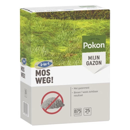 verlost u snel van mos in het gazon. Last van mos in uw gazon? Pokon Mos Weg bestrijdingsmiddel met tevens gazonvoeding om uw gras mooi te laten groeien.