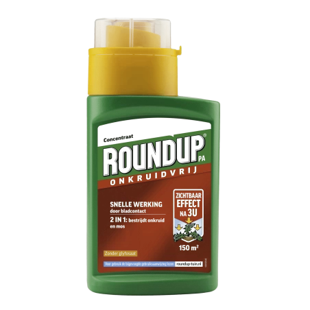 is ideaal voor Belgiƫ. Roundup PA is een concentraat zonder glyfosaat. Roundup PA tegen onkruid en mos mag in Belgiƫ verkocht en gebruikt worden omdat er geen glyfosaat in het product zit.